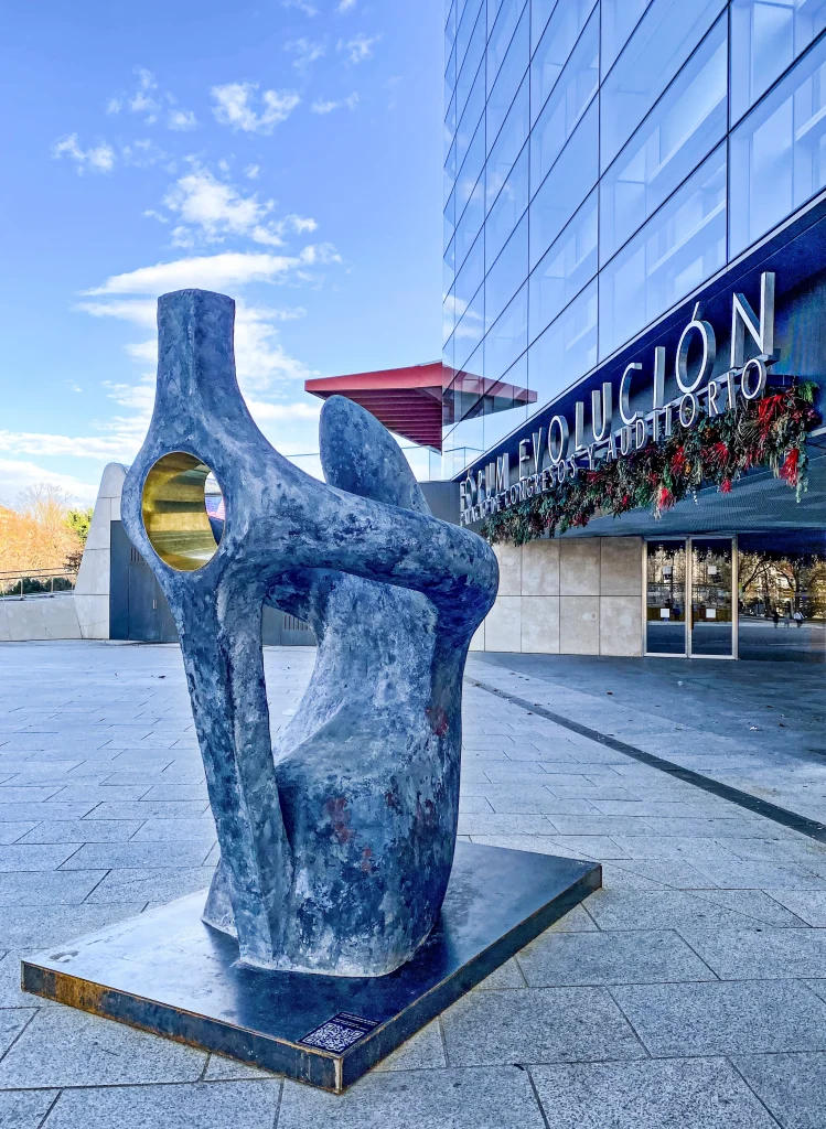 Esta escultura muestra al héroe burgalés, El Cid Campeador, hincado de hinojos. Nos recuerda el pasaje del Cantar del Mio Cid, en el que ofrece su respeto, amor y compromiso ante la Iglesia de Santa María. El hueco dorado de su espada invita a pasar la mano para recoger en el corazón la esencia del Cid Campeador.