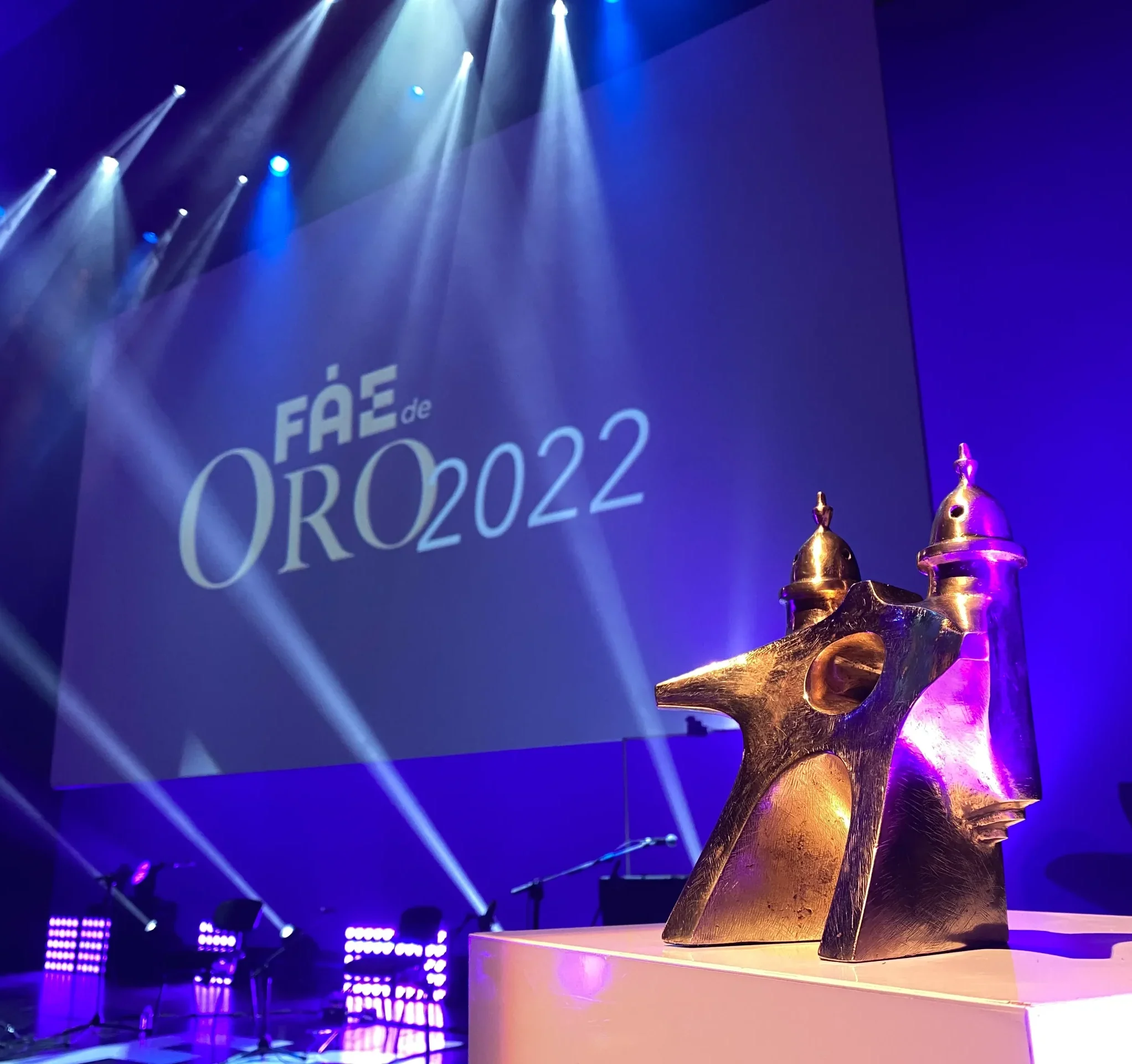 Premio al mejor emprendedor del año. El FAE de Oro representa la fachada del edificio “La Casa del Empresario”. A su vez reúne tres símbolos: “F” evocando una cerradura, la actitud práctica, racional y metódica. La “A” nos recibe con un abrazo de bienvenida y una puerta al fondo nos invita a entrar. La “E”es una silueta que une las torres y sus cúpulas mirando al cielo.