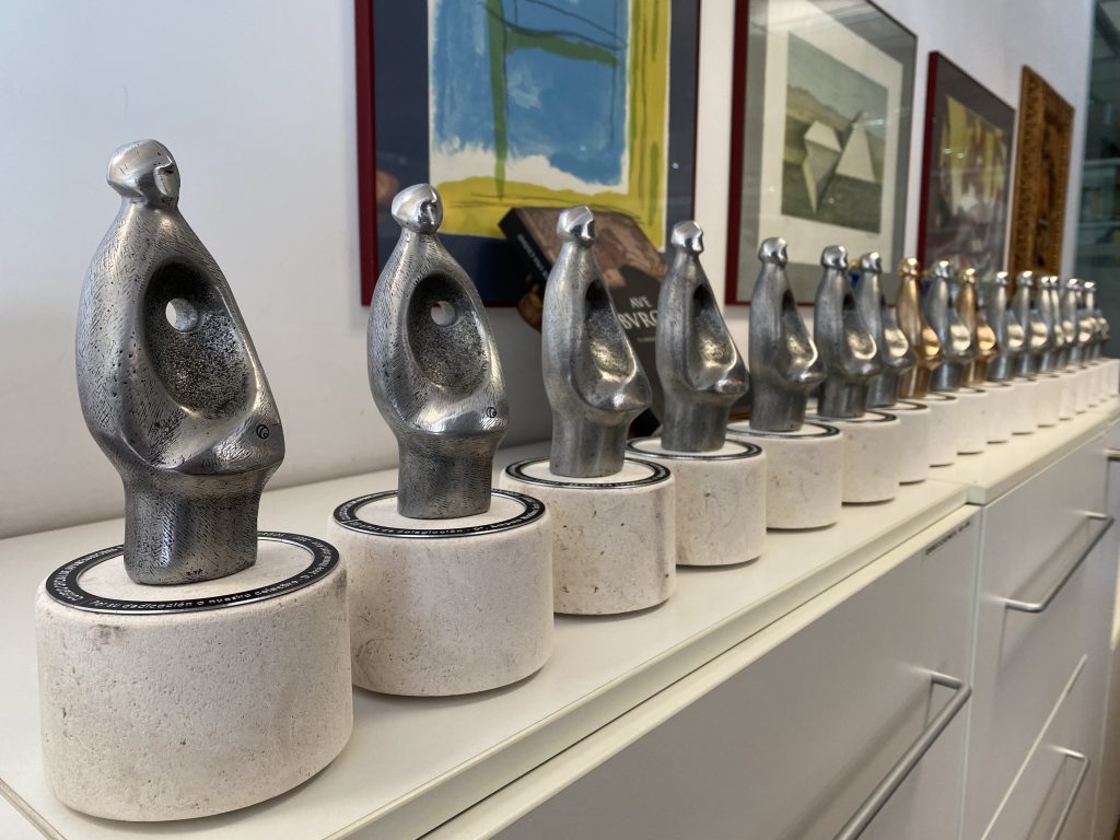 Premio al mejor emprendedor del año. El FAE de Oro representa la fachada del edificio “La Casa del Empresario”. A su vez reúne tres símbolos: “F” evocando una cerradura, la actitud práctica, racional y metódica. La “A” nos recibe con un abrazo de bienvenida y una puerta al fondo nos invita a entrar. La “E”es una silueta que une las torres y sus cúpulas mirando al cielo.